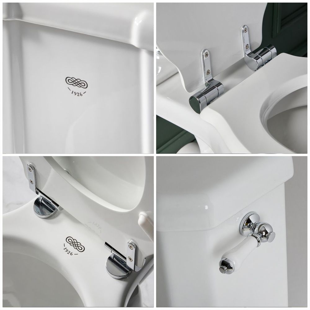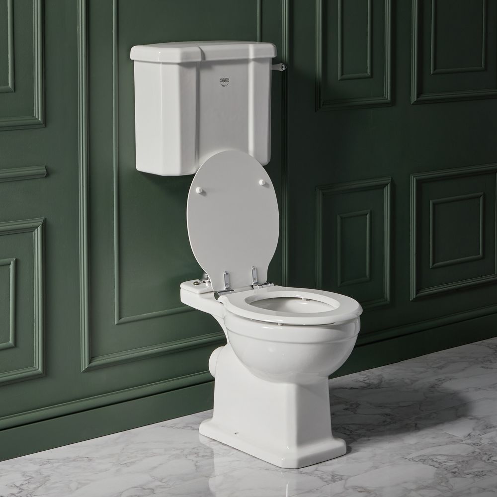 Featuring a timeless design, this Victorian style low level toilet has been made from hard-wearing ceramic with an easy to clean white glazed enamel finish. The included seat uses soft close hinges to prevent it from slamming shut.