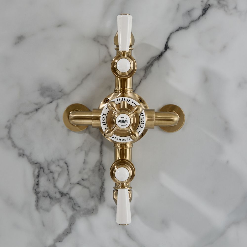 Milano Elizabeth - Traditional Triple Exposed Thermostatic Shower Valve - Brushed Brass