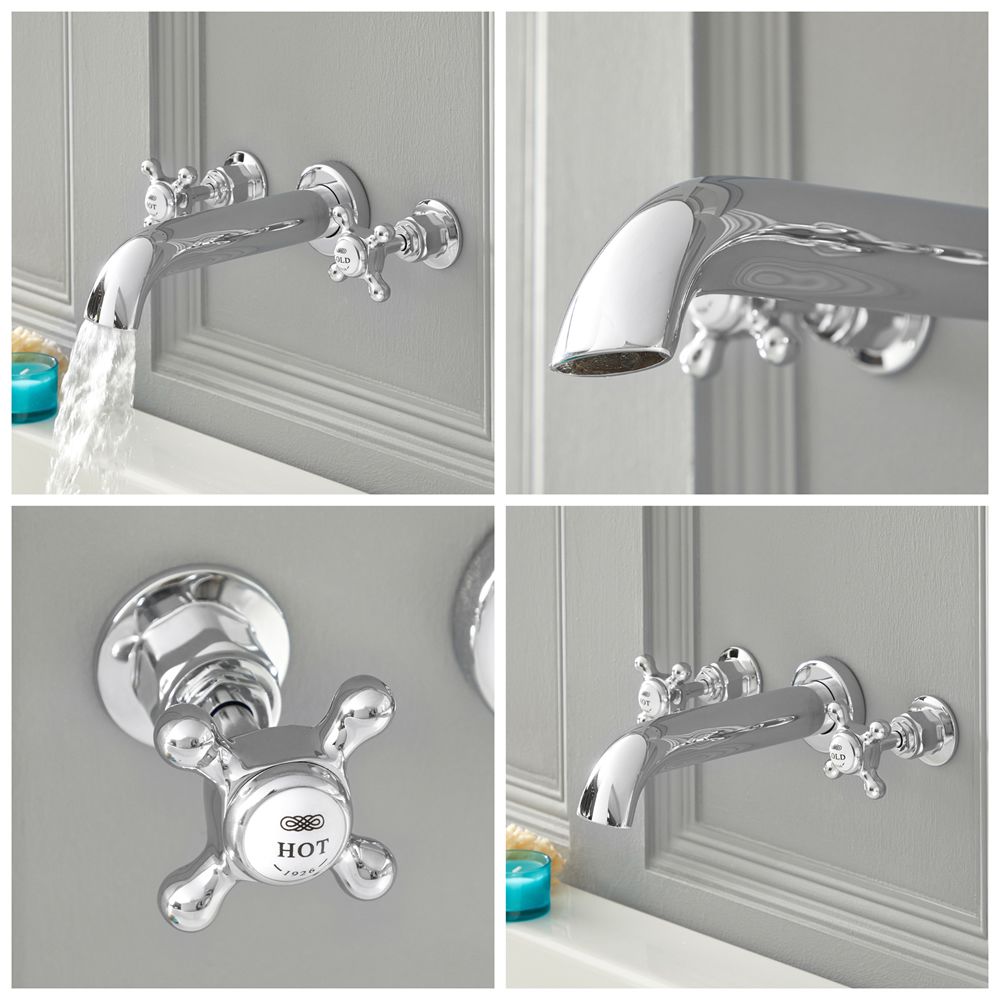 The beautifully crafted Milano Elizabeth wall-mounted 3 tap-hole crosshead bath filler tap is the perfect choice for your traditional bathroom.
