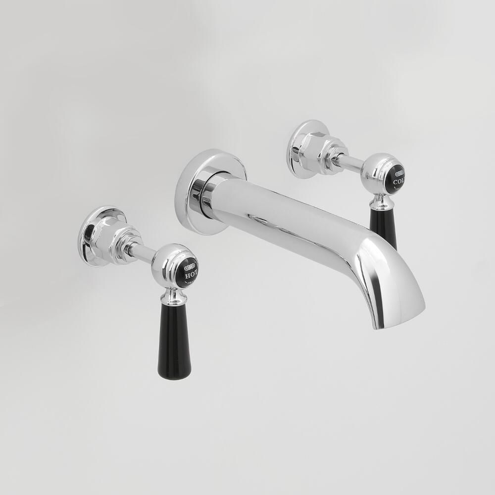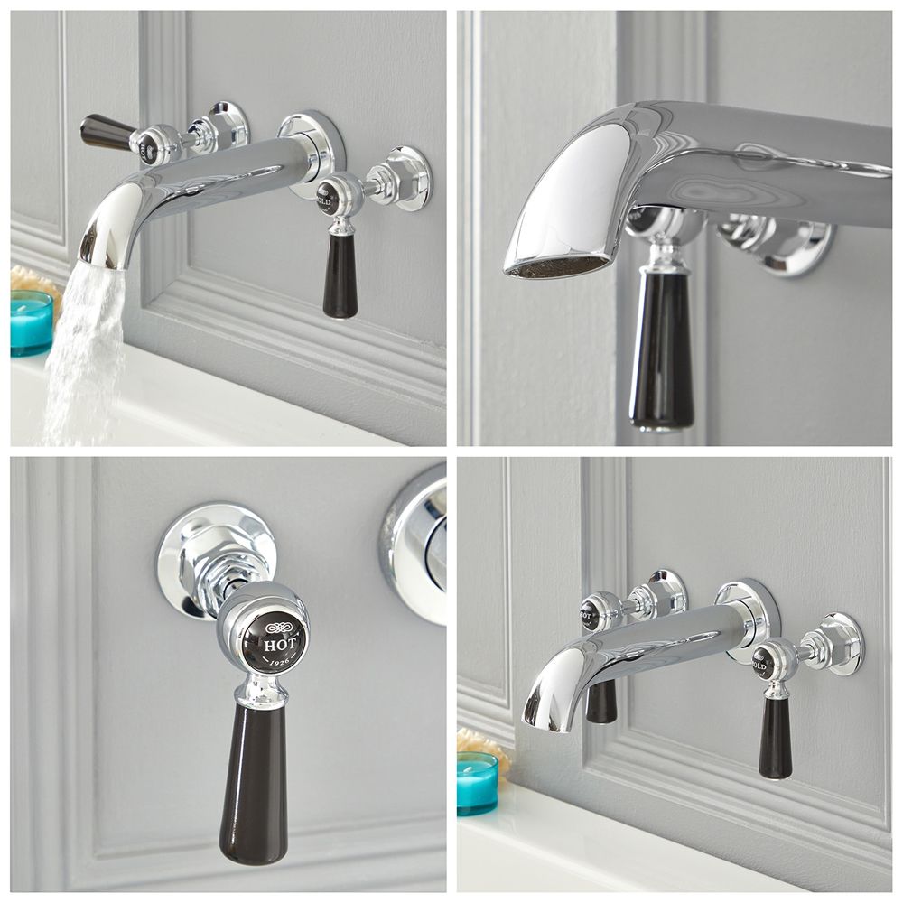 Milano Elizabeth - Traditional Wall Mounted 3 Mixer Tap-Hole Lever Bath Filler Mixer Tap - Chrome and Black