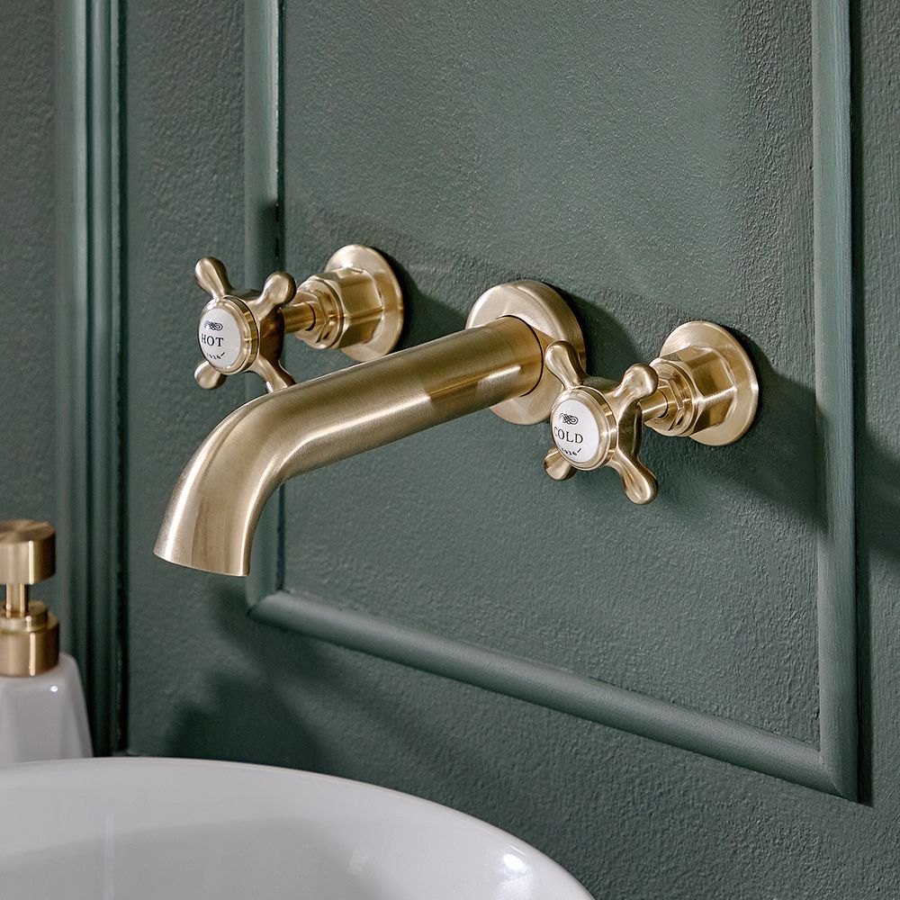 Featuring a beautiful traditional design and a hard-wearing brushed brass finish, this bathroom sink tap has been crafted from solid brass, so you can be assured of quality and long-lasting durability. The wall-mounted design also creates a neater finish and frees up surface space around your basin too.