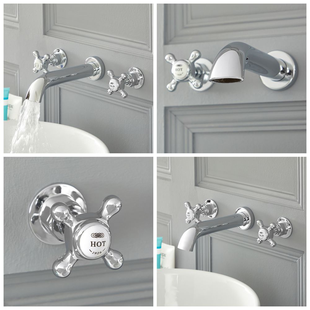 Bring classic style and elegance to your bathroom with the Milano Elizabeth wall-mounted 3 tap-hole basin mixer tap.
