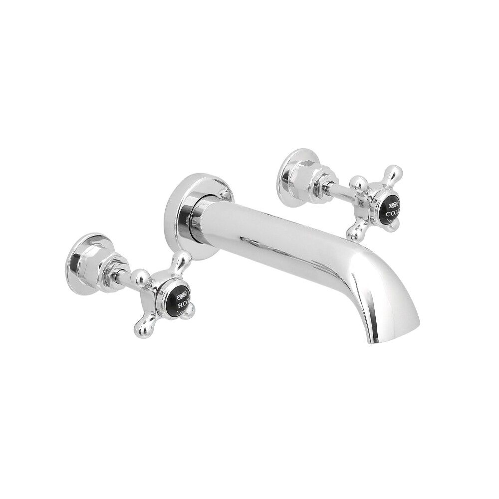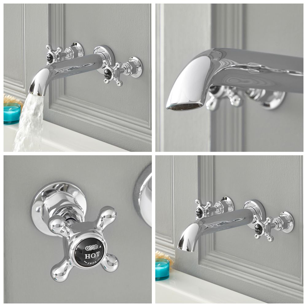 Milano Elizabeth - Traditional Wall Mounted Crosshead 3 Mixer Tap-Hole Bath Filler Mixer Tap - Chrome and Black