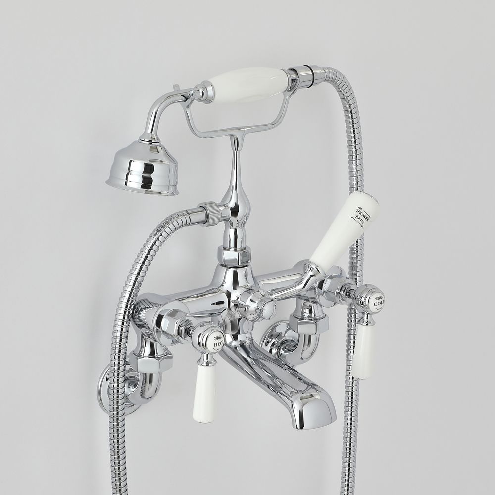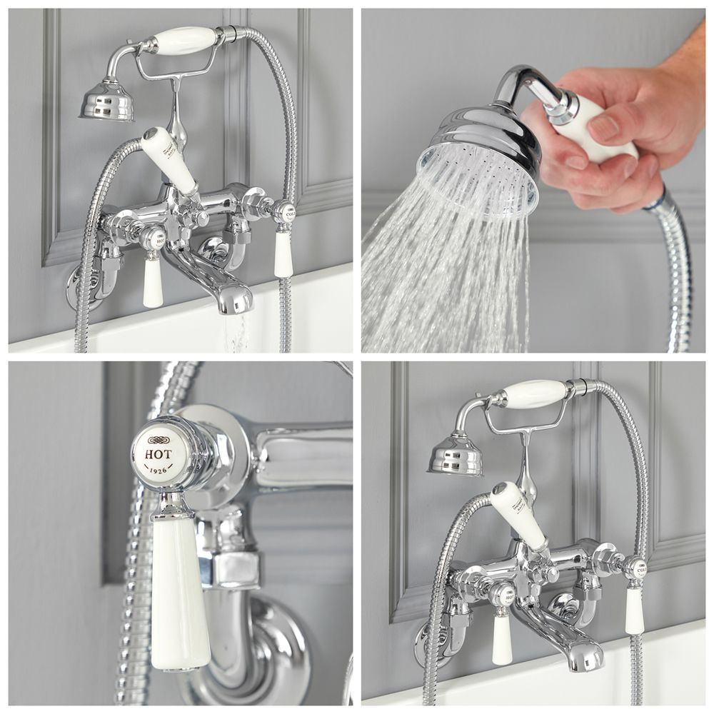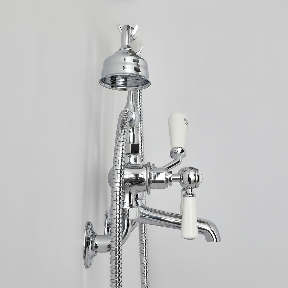 The elegant Milano Elizabeth wall-mounted bath mixer tap with shower is the perfect choice for your traditional bathroom.
