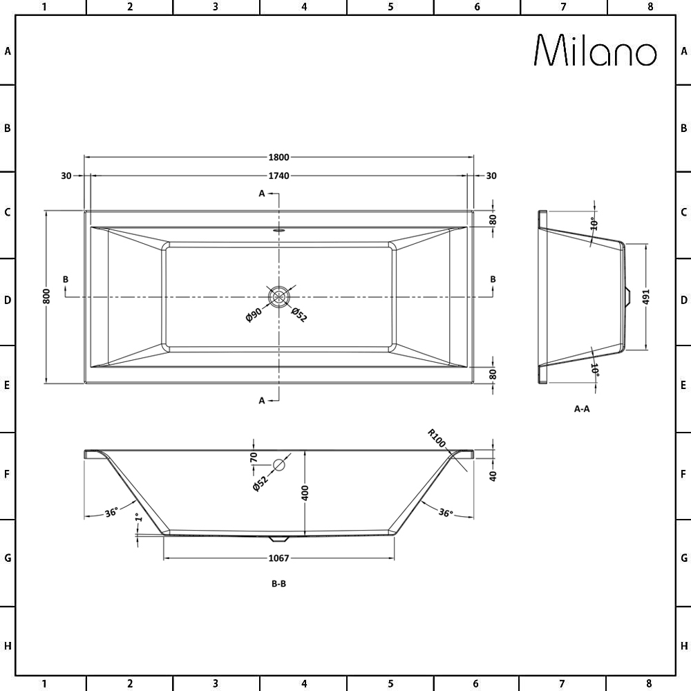Milano Elswick - 1800mm x 800mm Modern Square Double Ended Bath - Choice of Panels