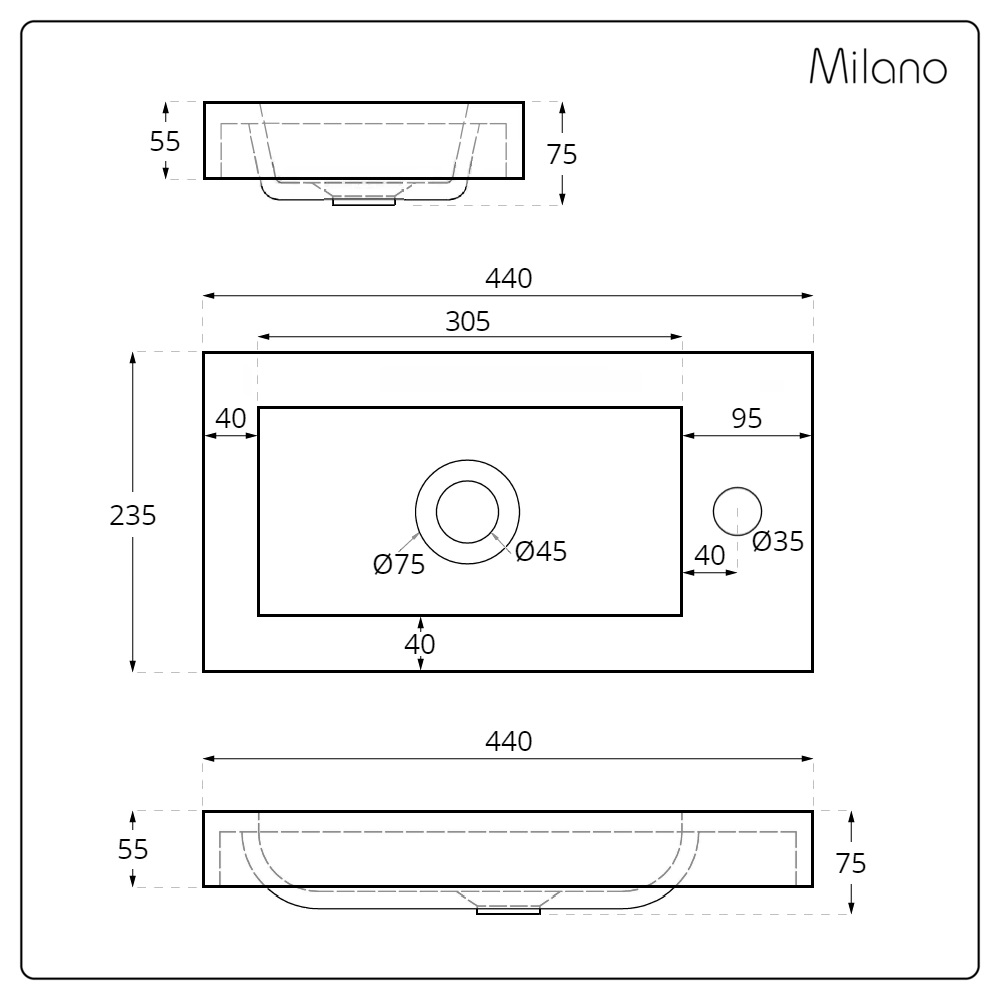 - Dimensions: W 440mm x D 235mm x H 75mm