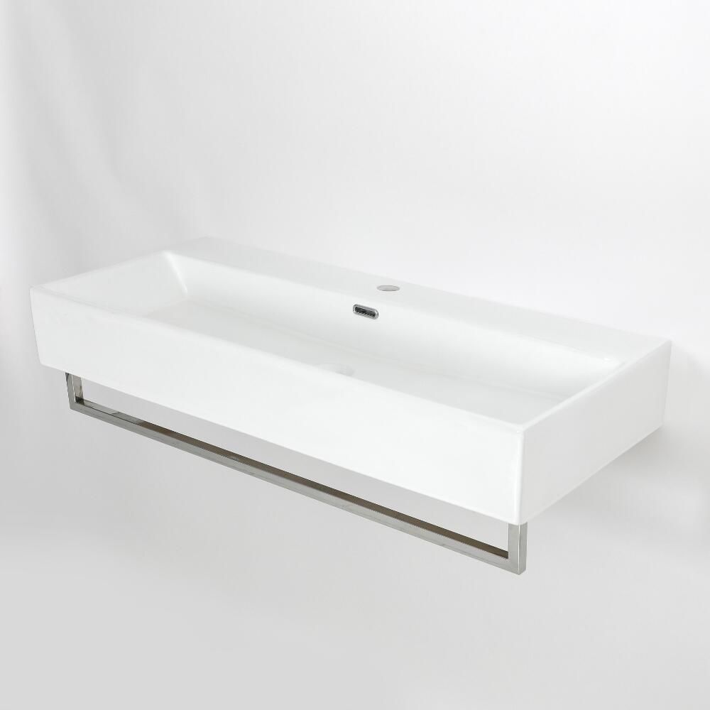 Milano Elswick - White Modern 1010mm x 425mm Rectangular Wall Hung Basin with Chrome Towel Rail