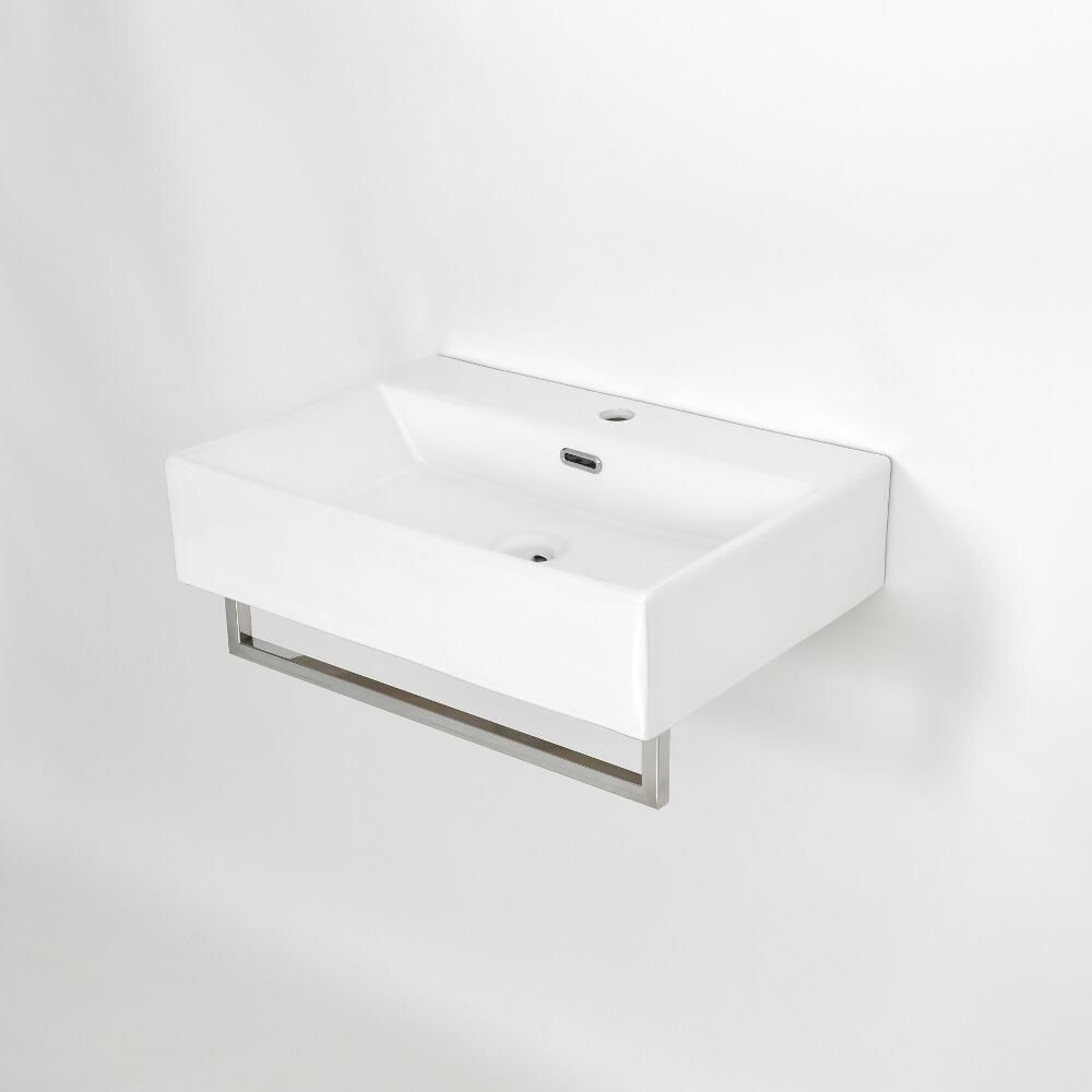 Milano Elswick - White Modern 605mm x 430mm Rectangular Wall Hung Basin with Chrome Towel Rail