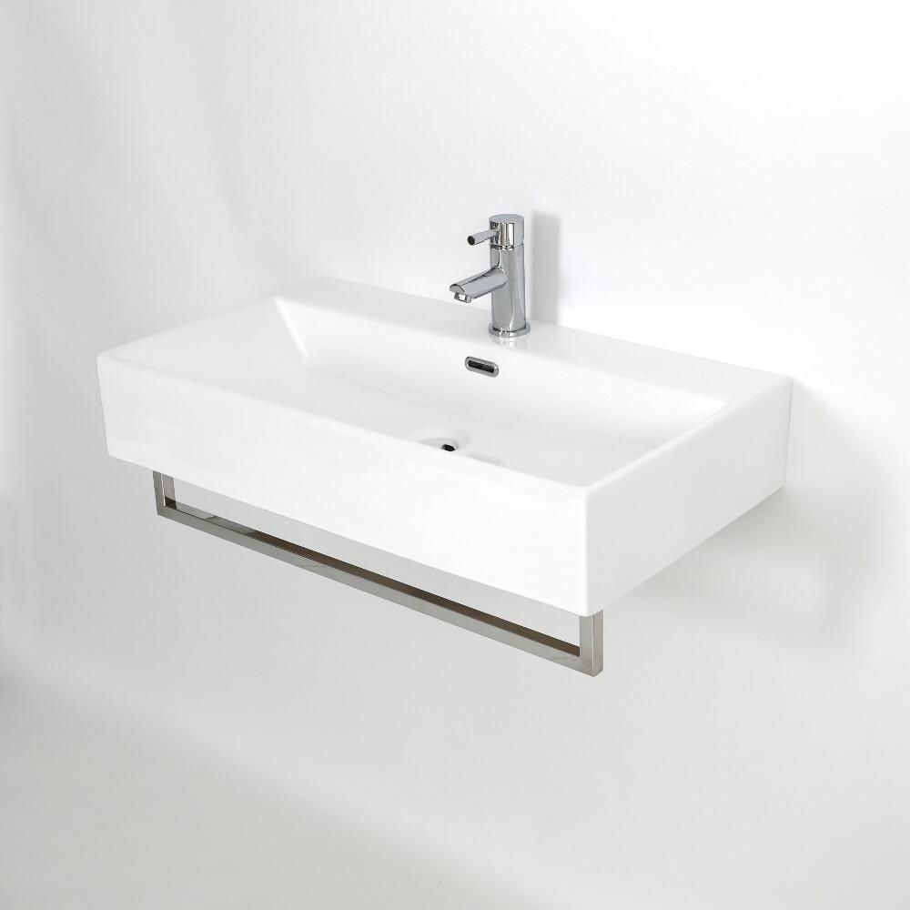 Milano Elswick - White Modern 750mm x 420mm Rectangular Wall Hung Basin with Chrome Towel Rail
