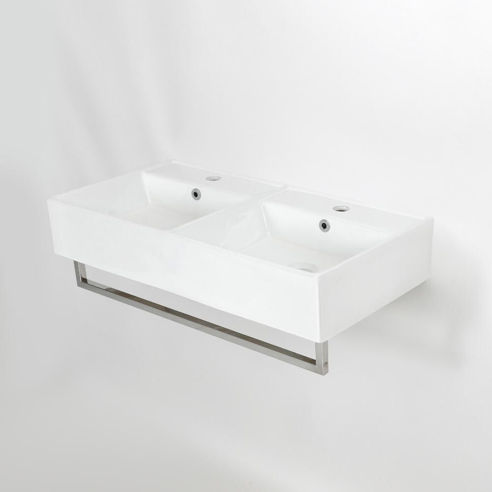 Bring a touch of luxury, designer style to your bathroom with the Milano Elswick 820mm x 420mm double wall hung basin, complete with chrome towel rail.