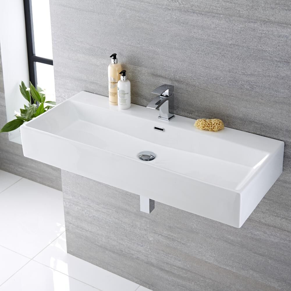Milano Elswick - White Modern Rectangular Wall Hung Basin - 1000mm x 420mm (1 Tap-Hole)