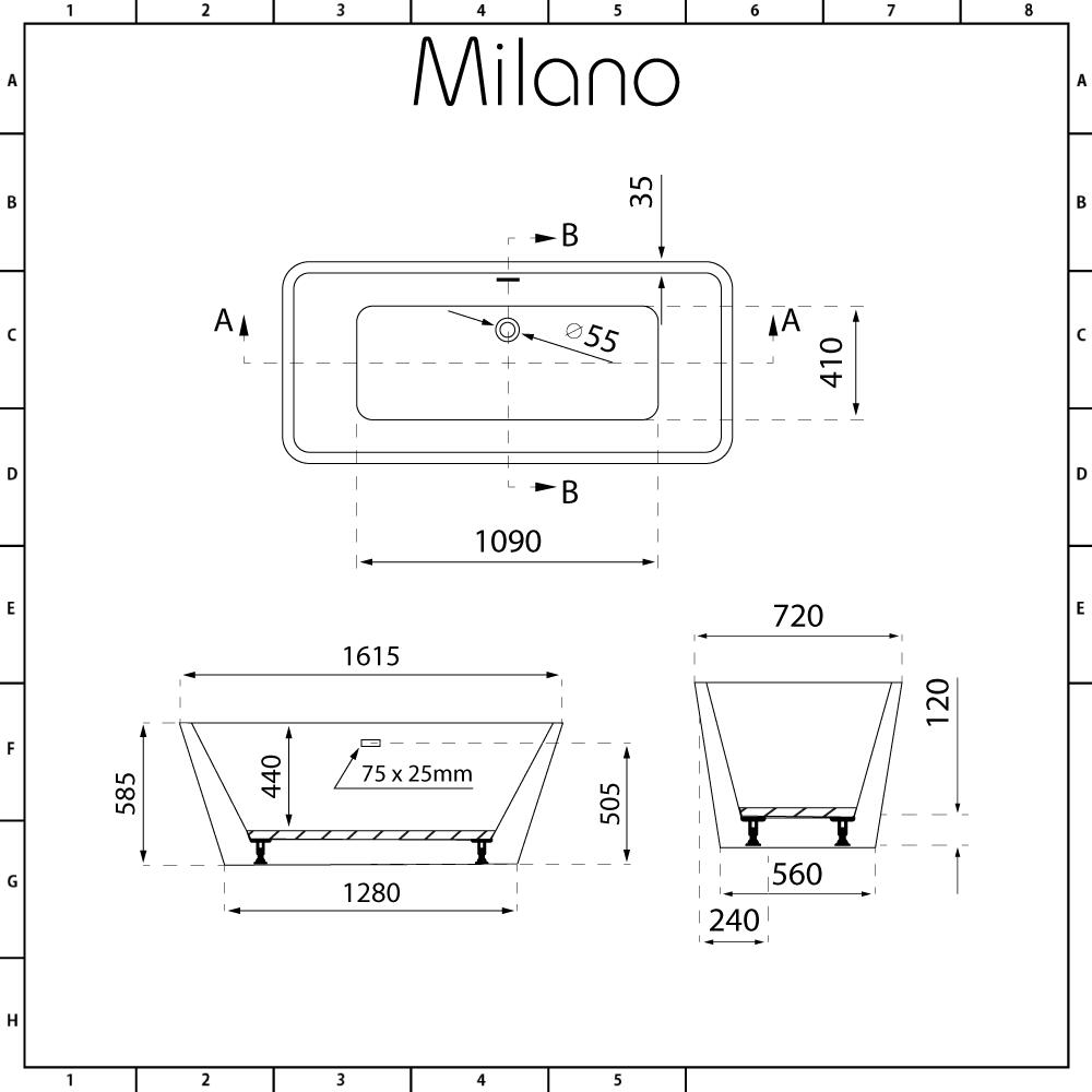 - No tap-holes - suitable for use with wall-mounted or freestanding bath taps only