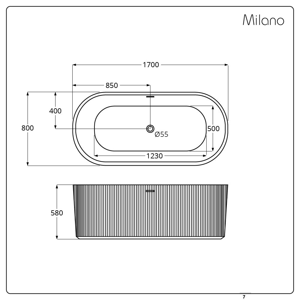 Milano Florence - Modern Double-Ended Fluted Freestanding Bath - 1700mm x 800mm - Choice of Overflow finish