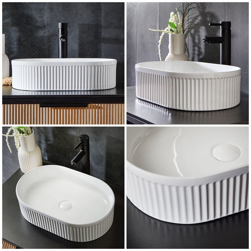 Makeover your bathroom and create an eye-catching feature with the Milano Florence 490mm x 310mm oval fluted countertop basin.