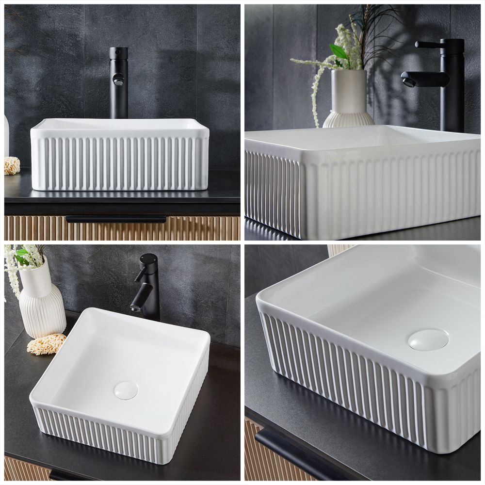 Milano Florence - White Fluted Square Countertop Basin - 380mm (No Tap-Holes)