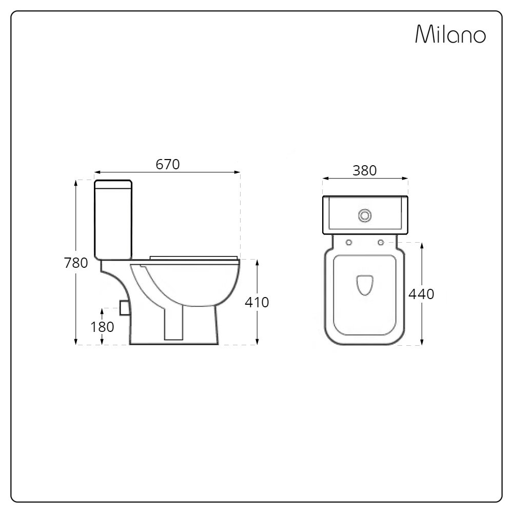 Elevate your modern bathroom with the Milano Hatton close coupled toilet, complete with water-saving dual flush cistern and soft close seat.