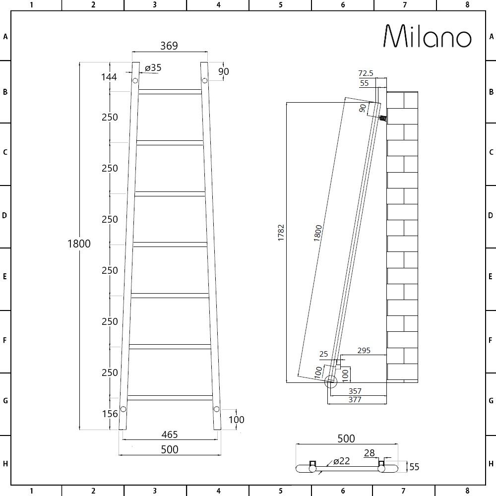 Milano Indus - Floor-Standing Ladder Heated Towel Rail - 1800mm x 500mm - Choice of Finish