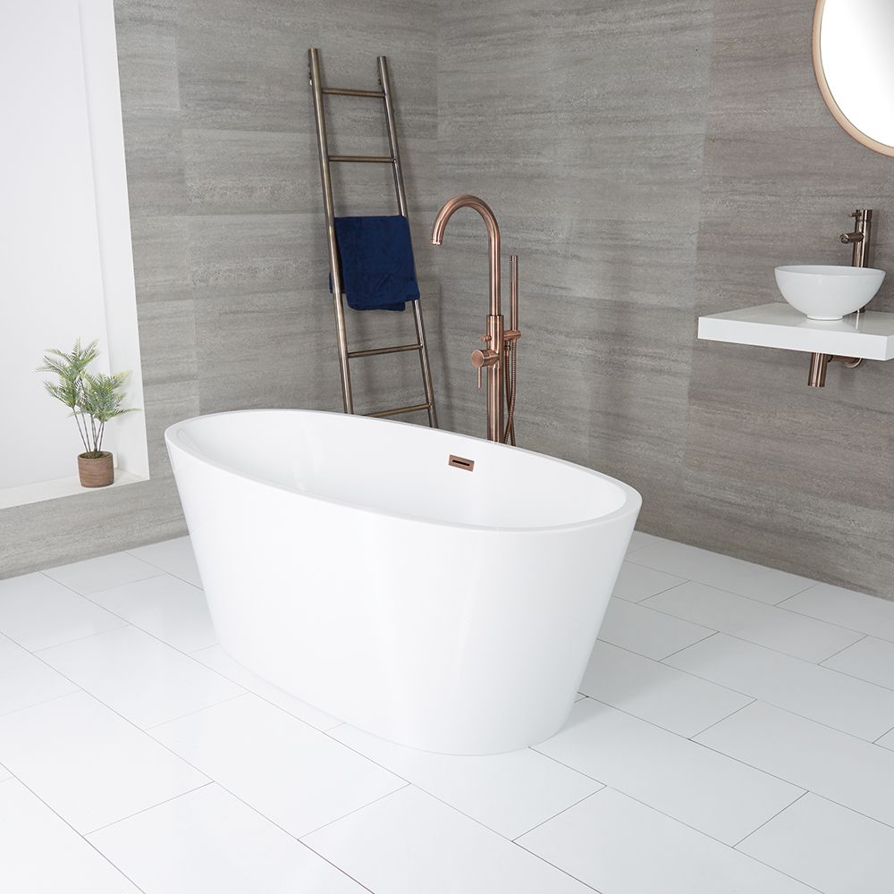 Milano Irwell - White Modern Oval Double-Ended Freestanding Bath - 1595mm x 740mm - Choice of Overflow Finish