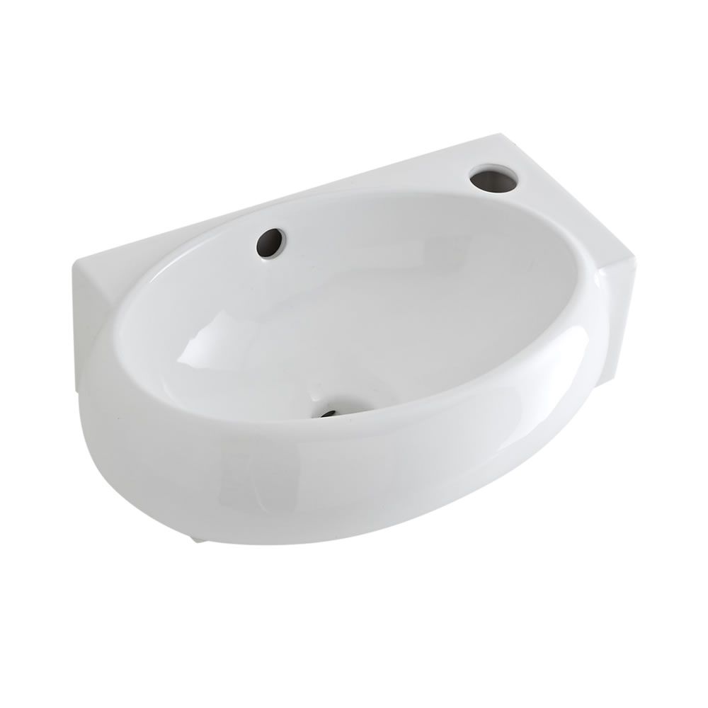 Milano Irwell - White Modern Oval Wall Hung Corner Basin - 400mm x 280mm (1 Tap-Hole)