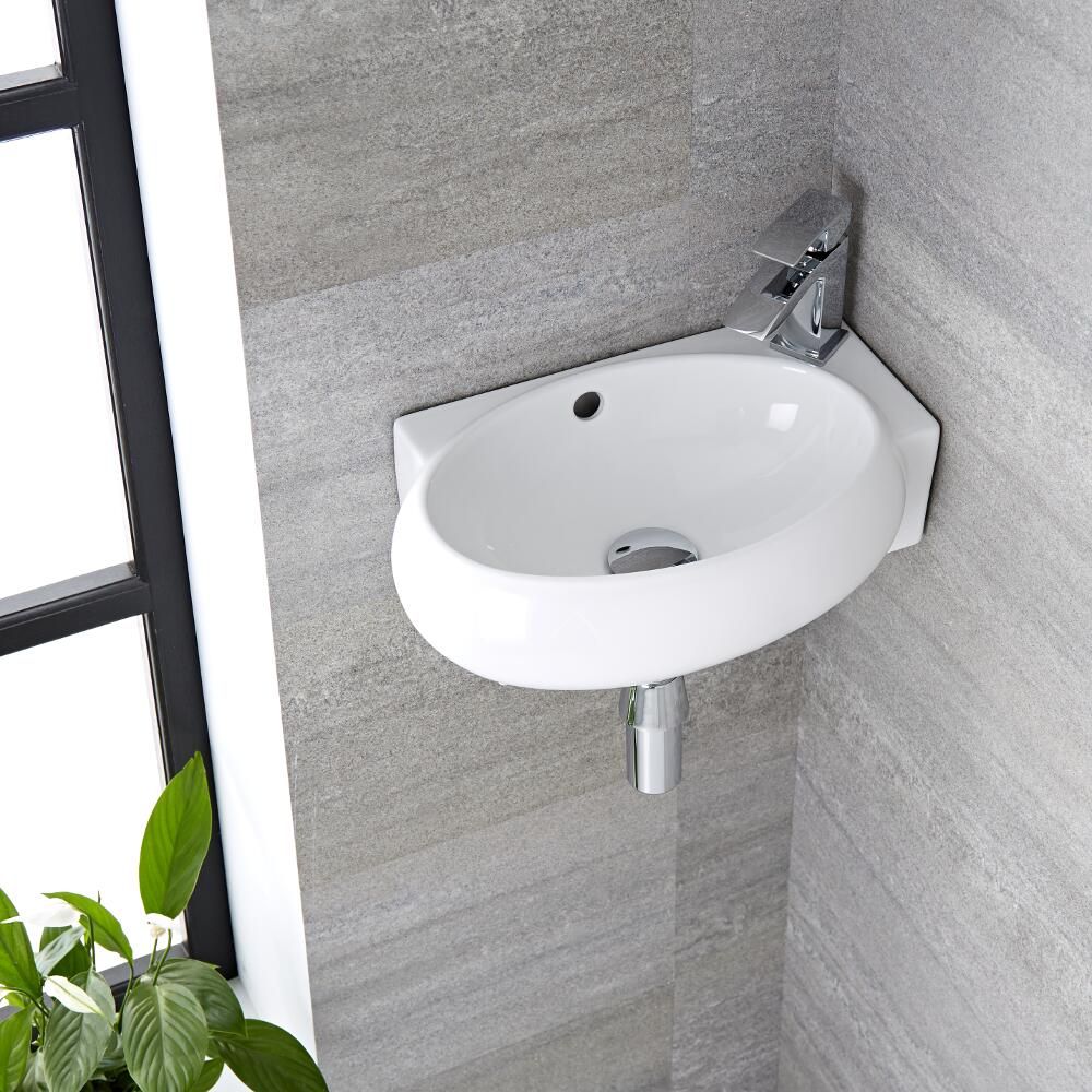 Freshen up your small bathroom or cloakroom with the sleek and modern Milano Irwell 400mm x 280mm wall hung corner basin, ideal for installation in even the tightest corner.