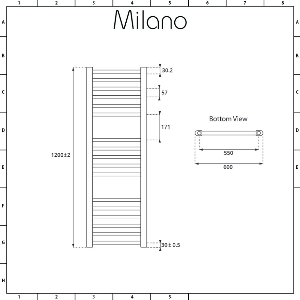 Milano Ive Dual Fuel - White Straight Heated Towel Rail - 1200mm x 600mm
