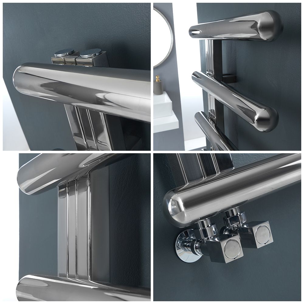 Bring a luxury feel to your bathroom and create a unique and contemporary look with the Milano Ivor 1000mm x 500mm mirror polished designer heated towel rail.