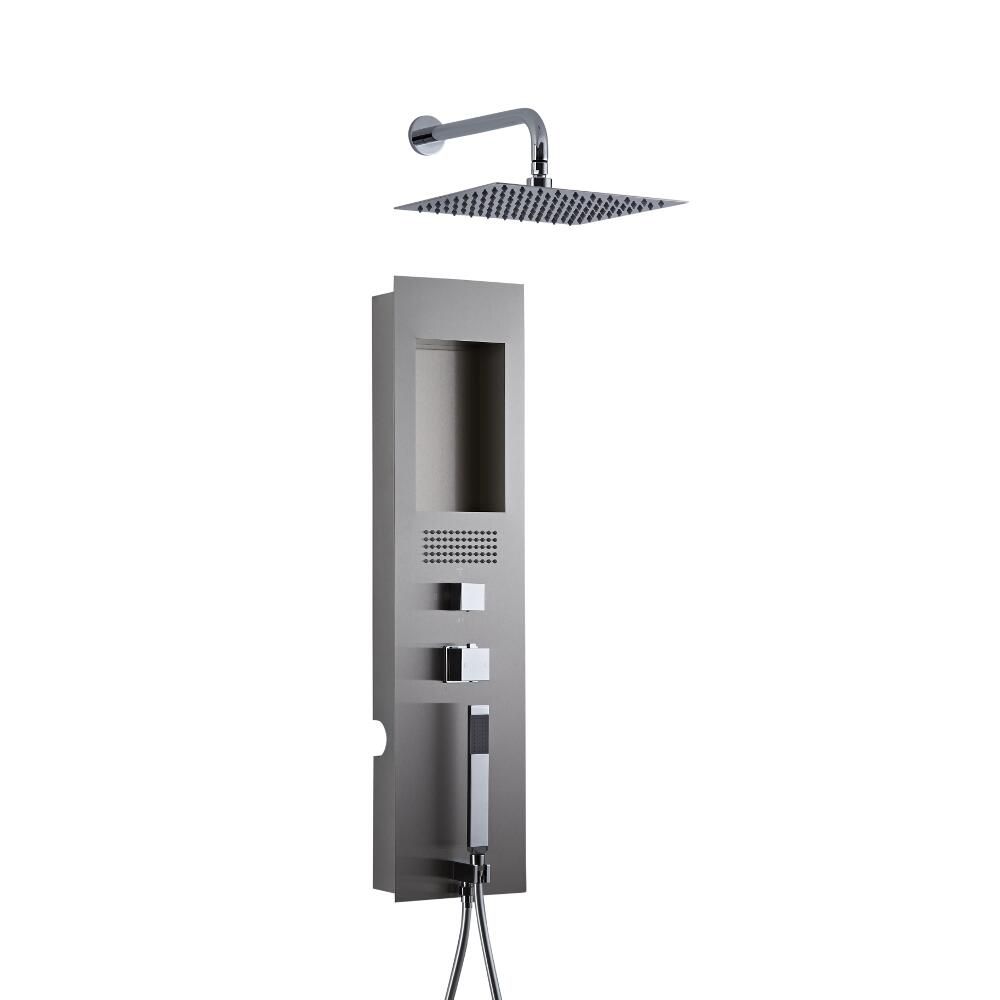 Milano Lisse - Concealed Brushed Shower Tower Panel with 200mm Square Head and Wall Arm
