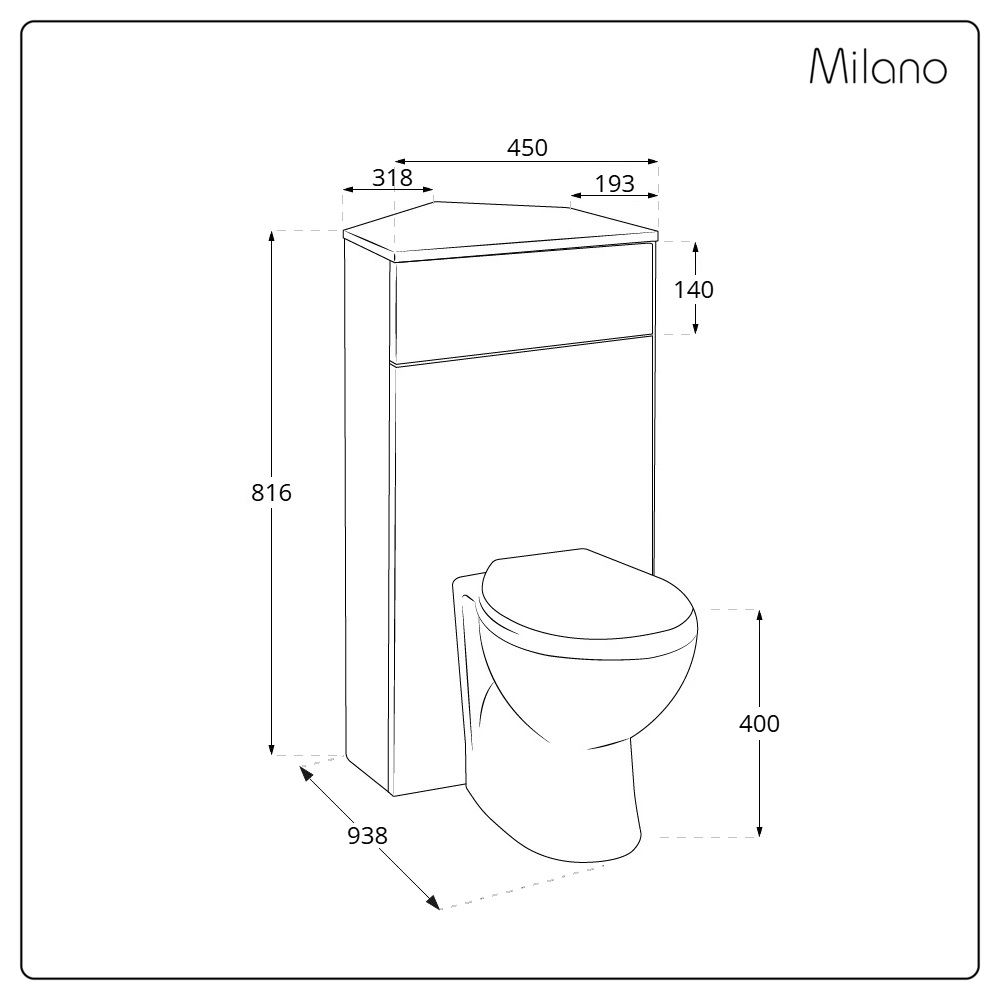 - WC Unit Dimensions: W 450mm x D 418mm x H 816mm
