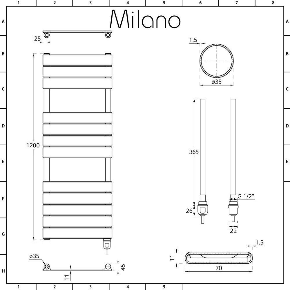 Create a stunning contemporary look and enjoy sumptuous warm towels with the Milano Lustro 1200mm x 450mm anthracite dual fuel heated towel rail.
