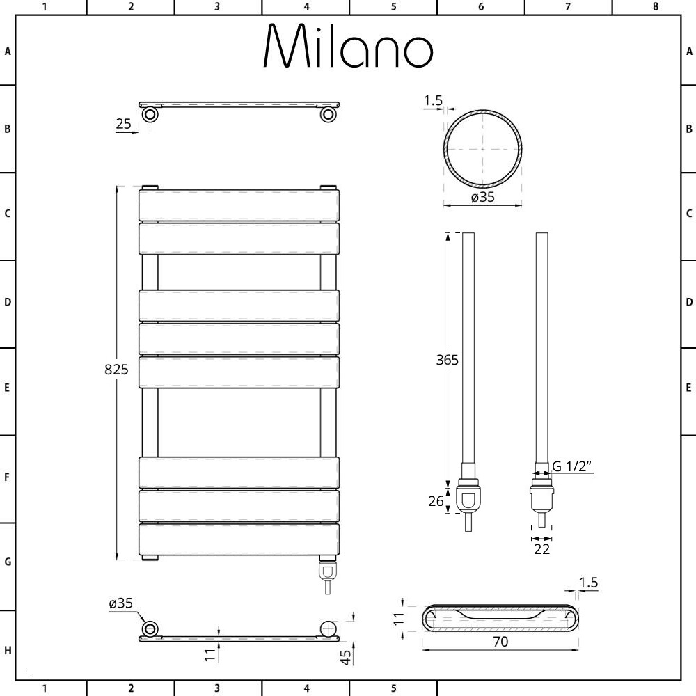 Milano Lustro Dual Fuel - Designer Anthracite Flat Panel Heated Towel Rail - 825mm x 600mm