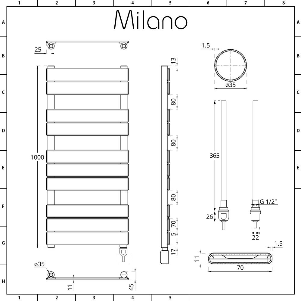 Milano Lustro Dual Fuel - Designer Chrome Flat Panel Heated Towel Rail - 1000mm x 600mm