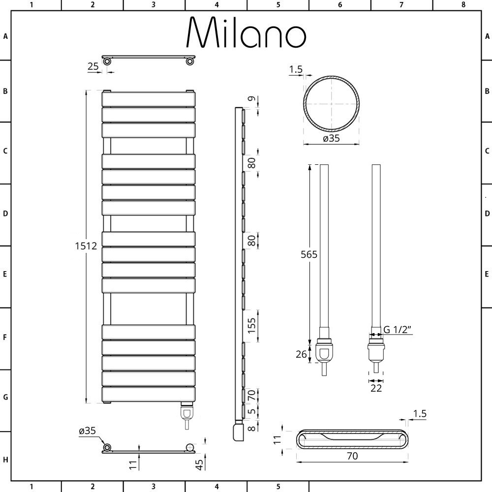 Milano Lustro Dual Fuel - Designer Chrome Flat Panel Heated Towel Rail - 1512mm x 600mm