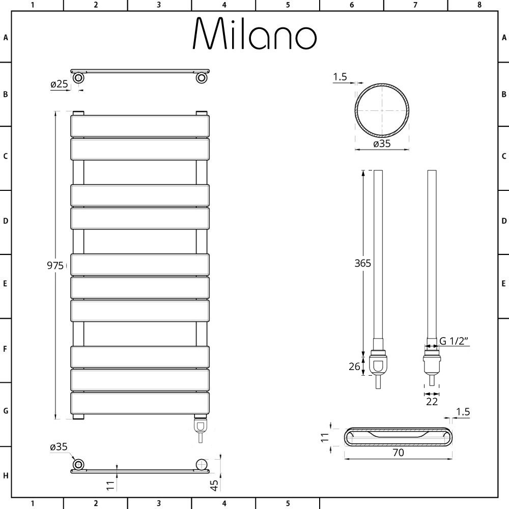 Milano Lustro Dual Fuel - Designer White Flat Panel Heated Towel Rail - 975mm x 450mm