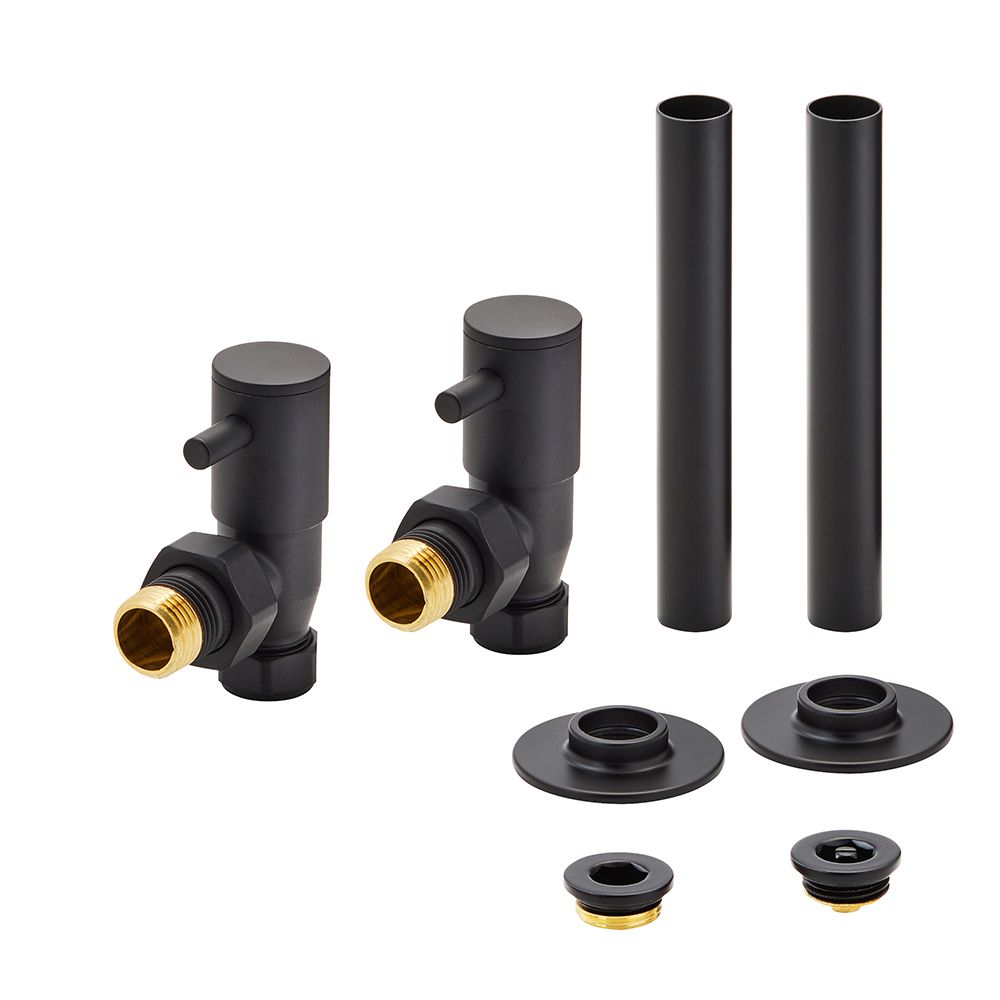 Milano - Minimalist Angled Radiator Valve and Pipe Sleeve Set - Choice of Finish