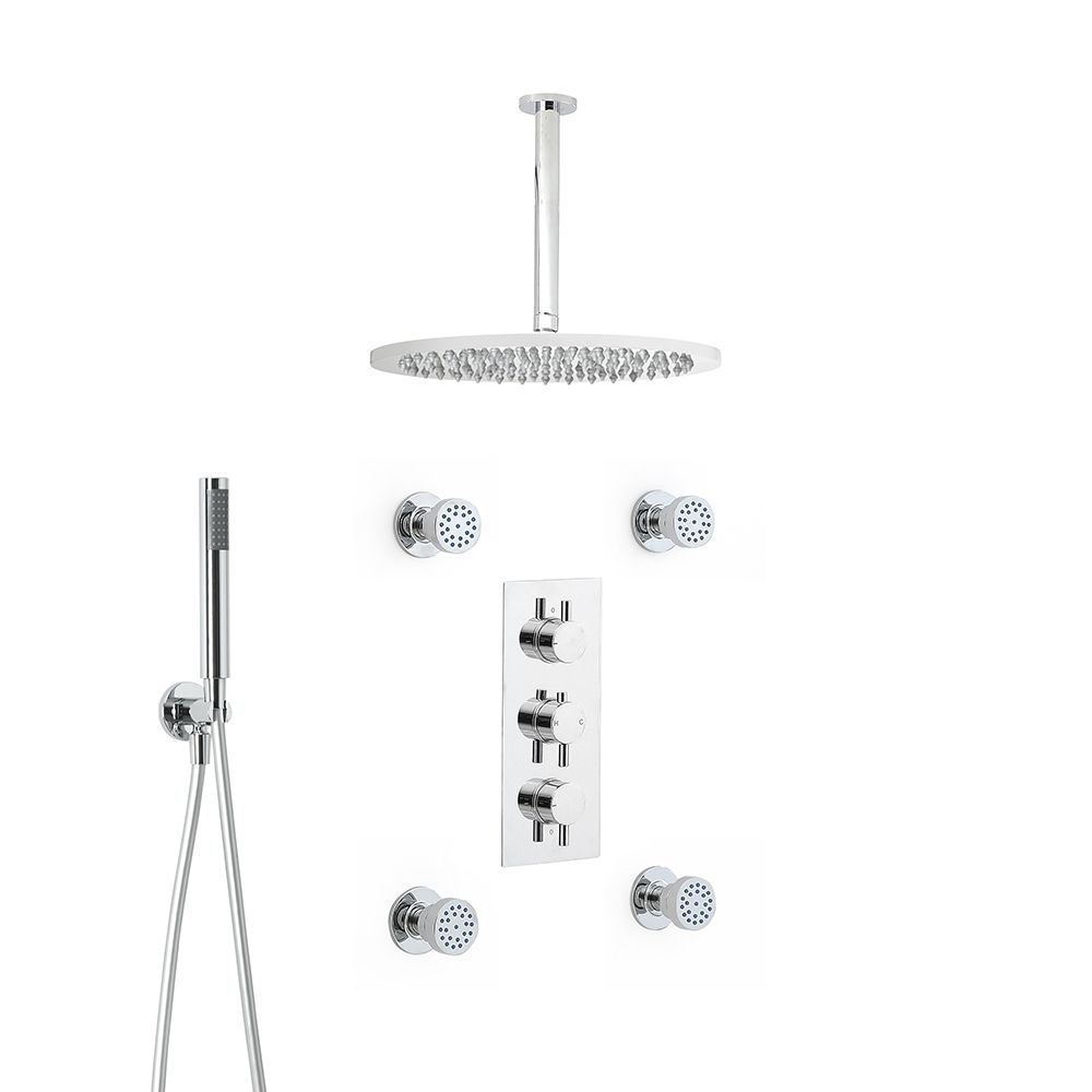 Milano Mirage - Chrome Thermostatic Shower with Diverter, Ceiling Mounted Shower Head, Hand Shower and Body Jets (3 Outlet)