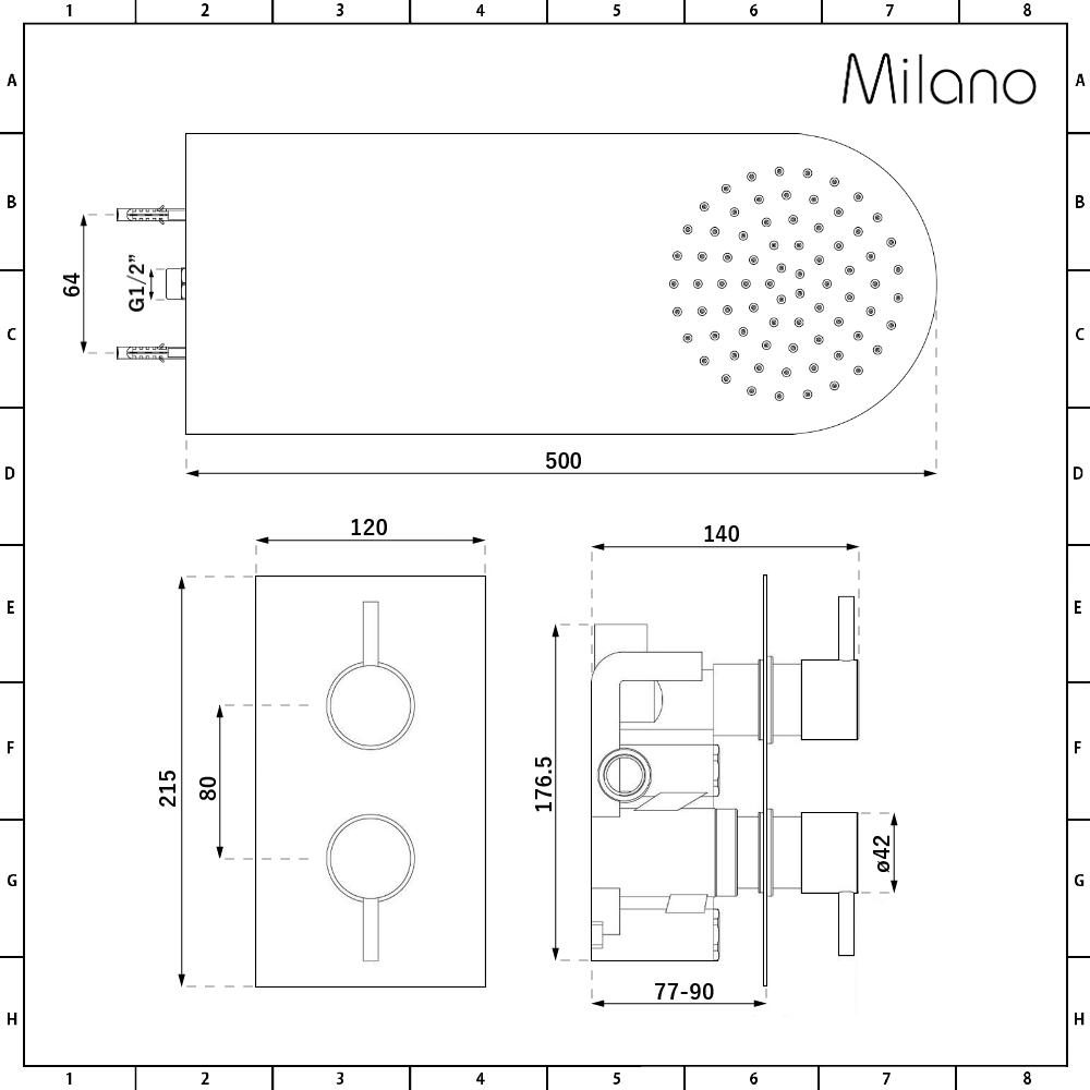 Enjoy a luxurious shower with the Milano Mirage thermostatic mixer shower, complete with shower valve and thin fixed rainfall shower head.