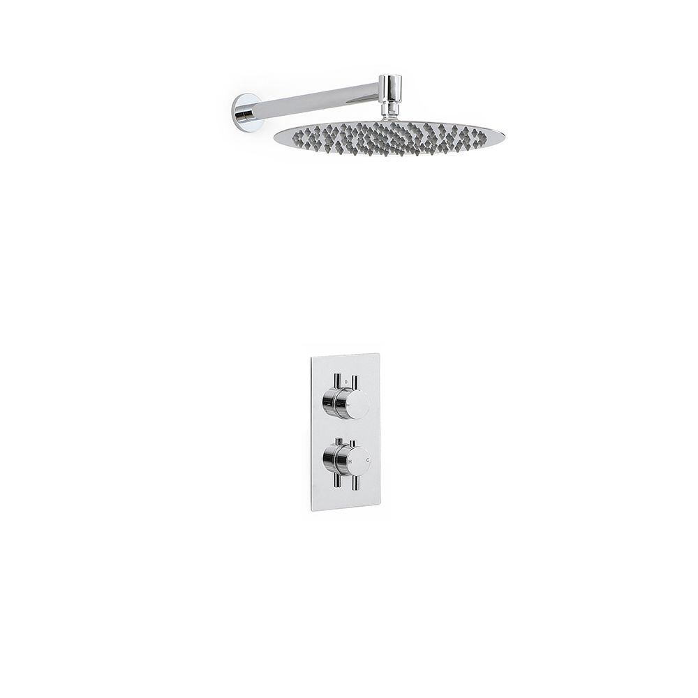 Featuring anti-scald technology to cut the water flow if the temperature gets too high, the solid brass thermostatic shower valve will help to ensure safe use of the shower. The modern round handles allow for easy control.