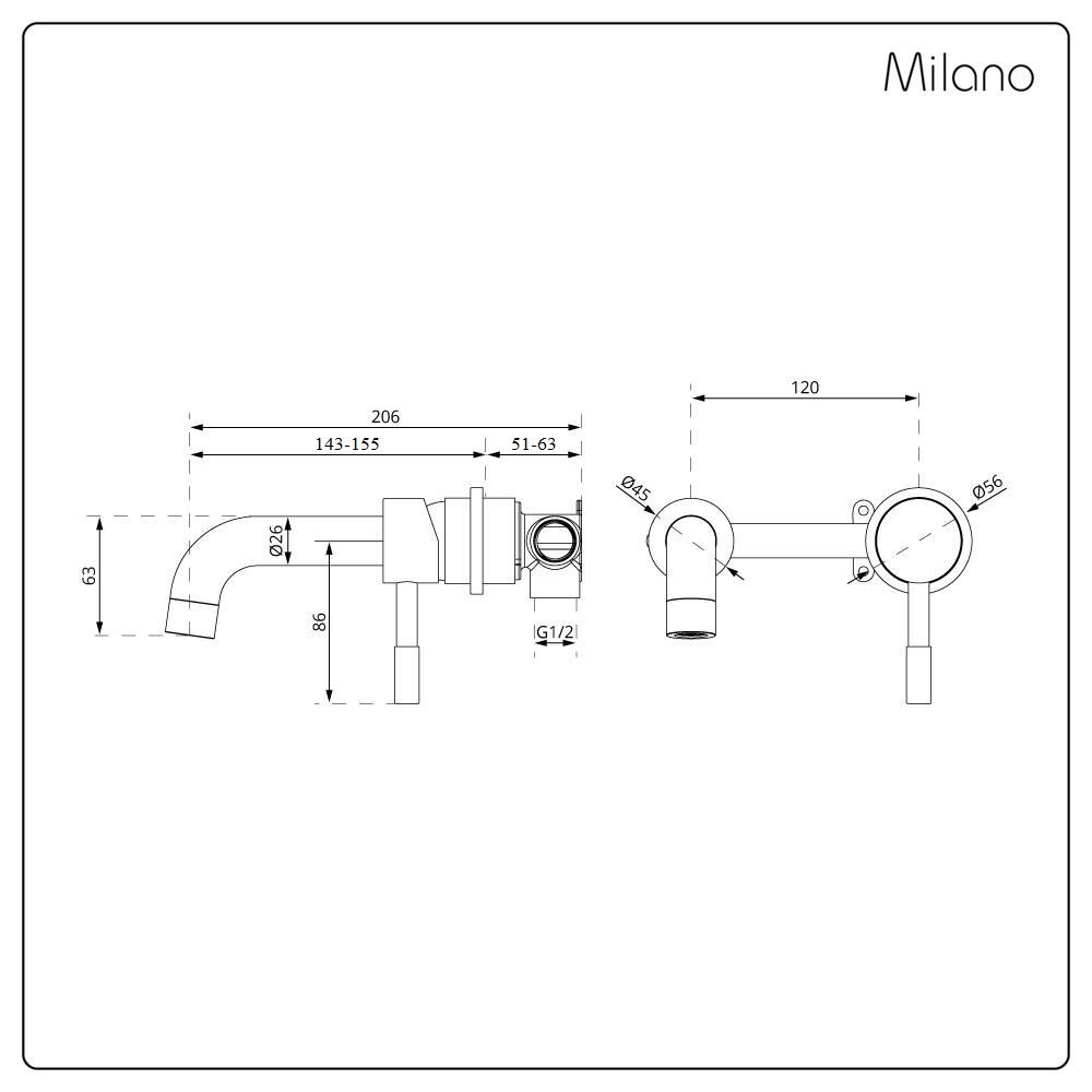 Create a modern and minimal look with the Milano Mirage wall-mounted basin mixer tap.