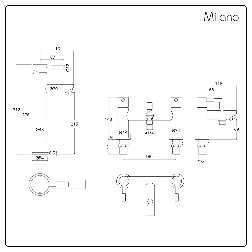 Create a look that's modern and coordinated with the Milano high rise mono basin tap and bath shower mixer tap set.