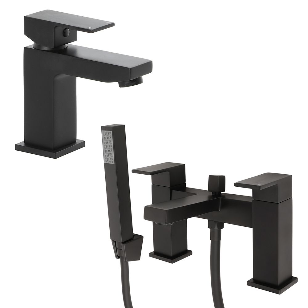 Milano - Modern Square Basin Mixer and Bath Shower Mixer Tap Set - Choice of Finish