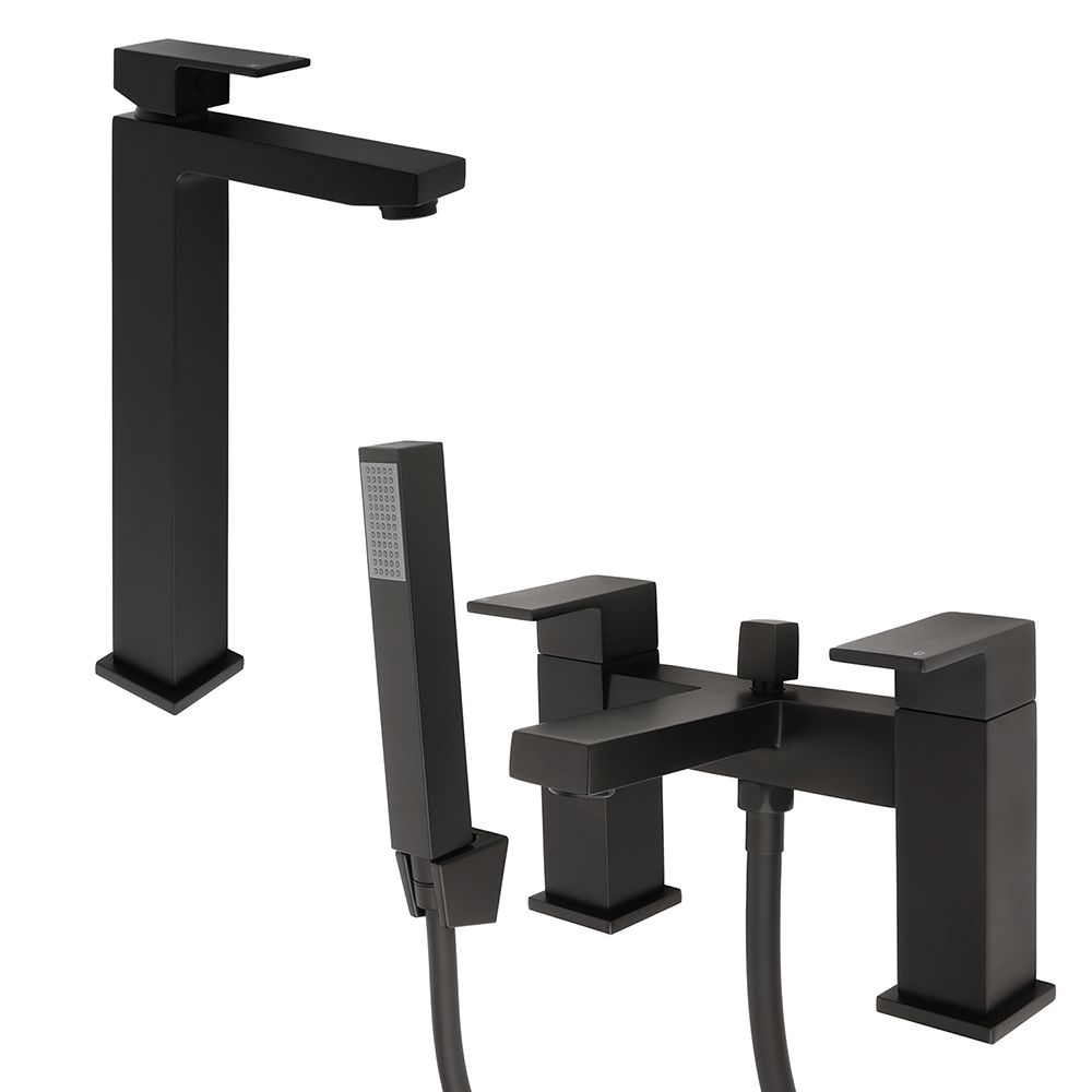 Milano - Modern Square High Rise Basin Mixer and Bath Shower Mixer Tap Set - Choice of Finish