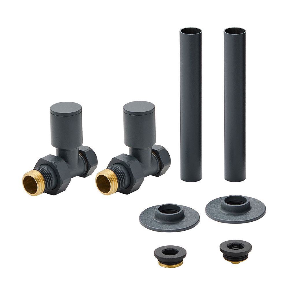 Milano - Modern Straight Radiator Valve and Pipe Sleeve Set - Choice of Finish