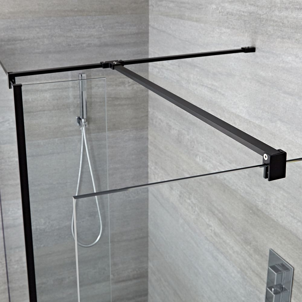 Providing easy shower access, the Nero wet room shower features minimal styling and a contemporary black profile. The toughened safety glass panels have an 8mm thickness for excellent strength and a luxury feel, while the 1950mm height helps to contain more splashes.