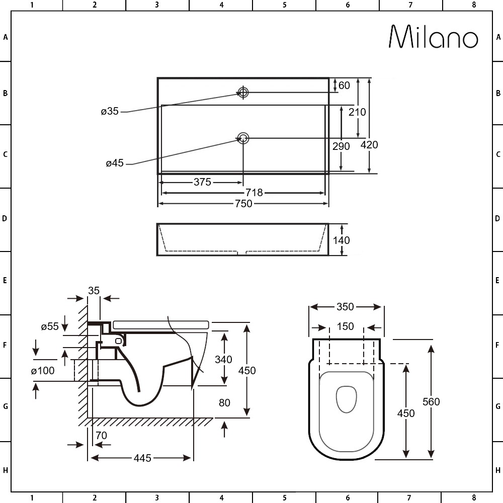 - Toilet Dimensions: W 350mm x D 560mm x H 340mm