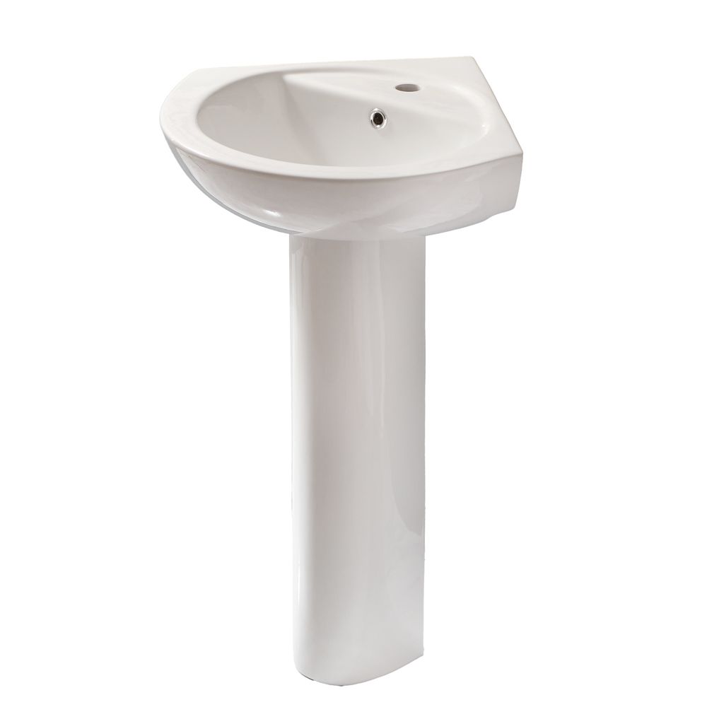 Sure to elevate a modern look, this bathroom sink features a space-saving corner design, making it ideal for small bathrooms and cloakrooms. Made from premium quality ceramic, this pedestal basin has a white glazed enamel finish that's hard-wearing and easy to clean. It also has a single tap-hole and so is perfect for pairing with one of the Milano mono basin taps to complete and enhance the look.