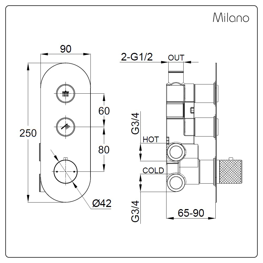 Elevate your modern bathroom and control your shower with ease with the Milano Orta two outlet push button thermostatic shower mixer valve.