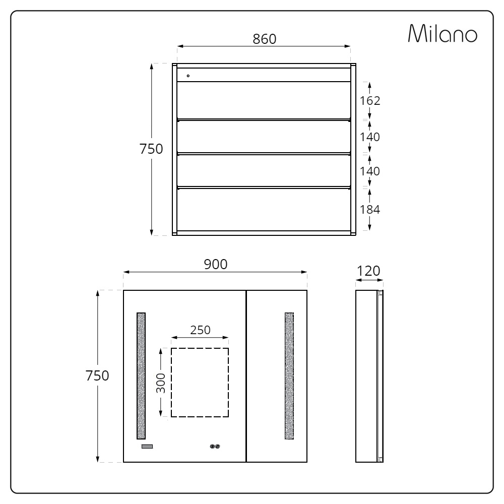 Introduce essential storage space to your bathroom with the Milano Ossa 900mm x 750mm LED mirrored cabinet.