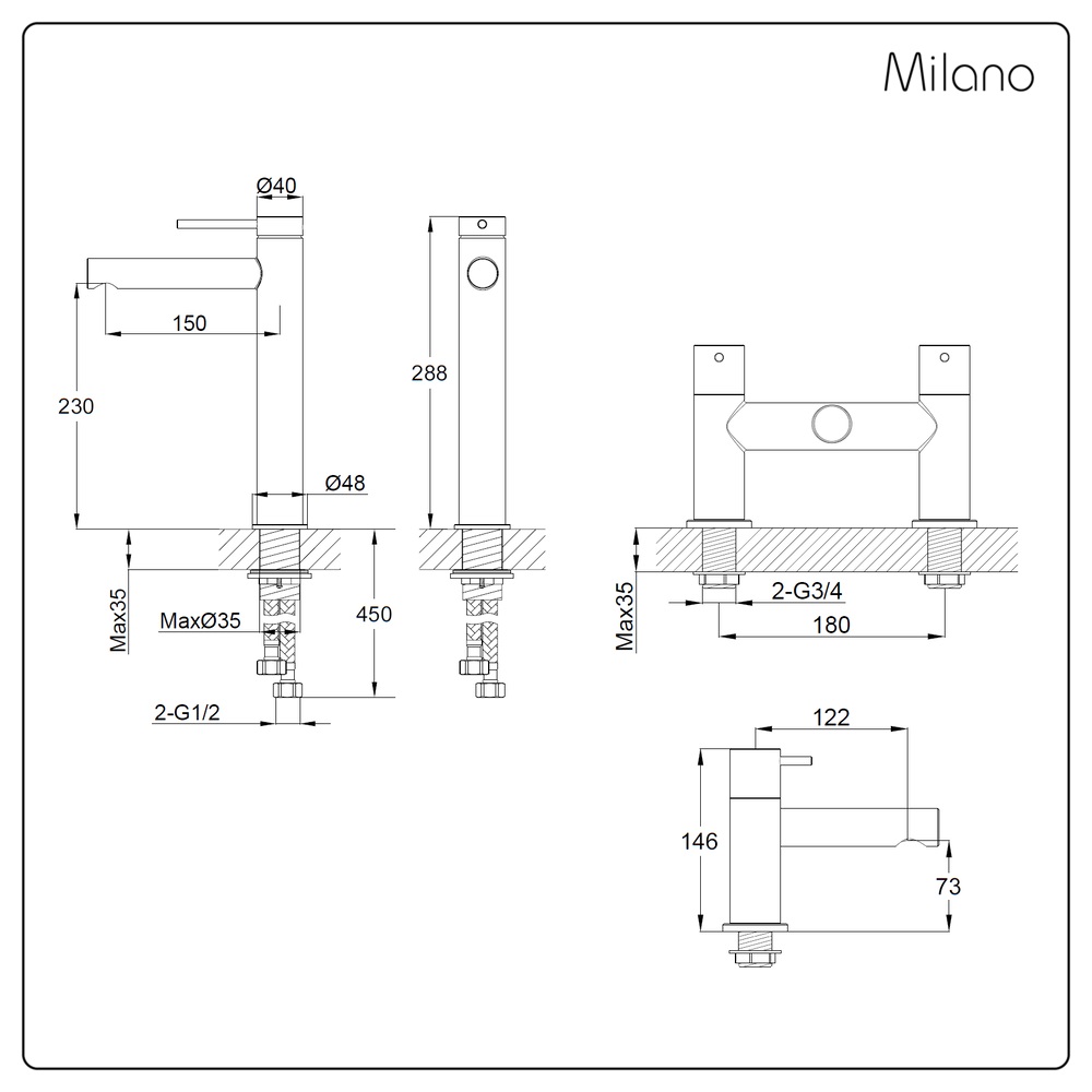 The Milano Otto high rise mono basin tap and bath filler mixer tap set will bring a modern and coordinated look to your bathroom.