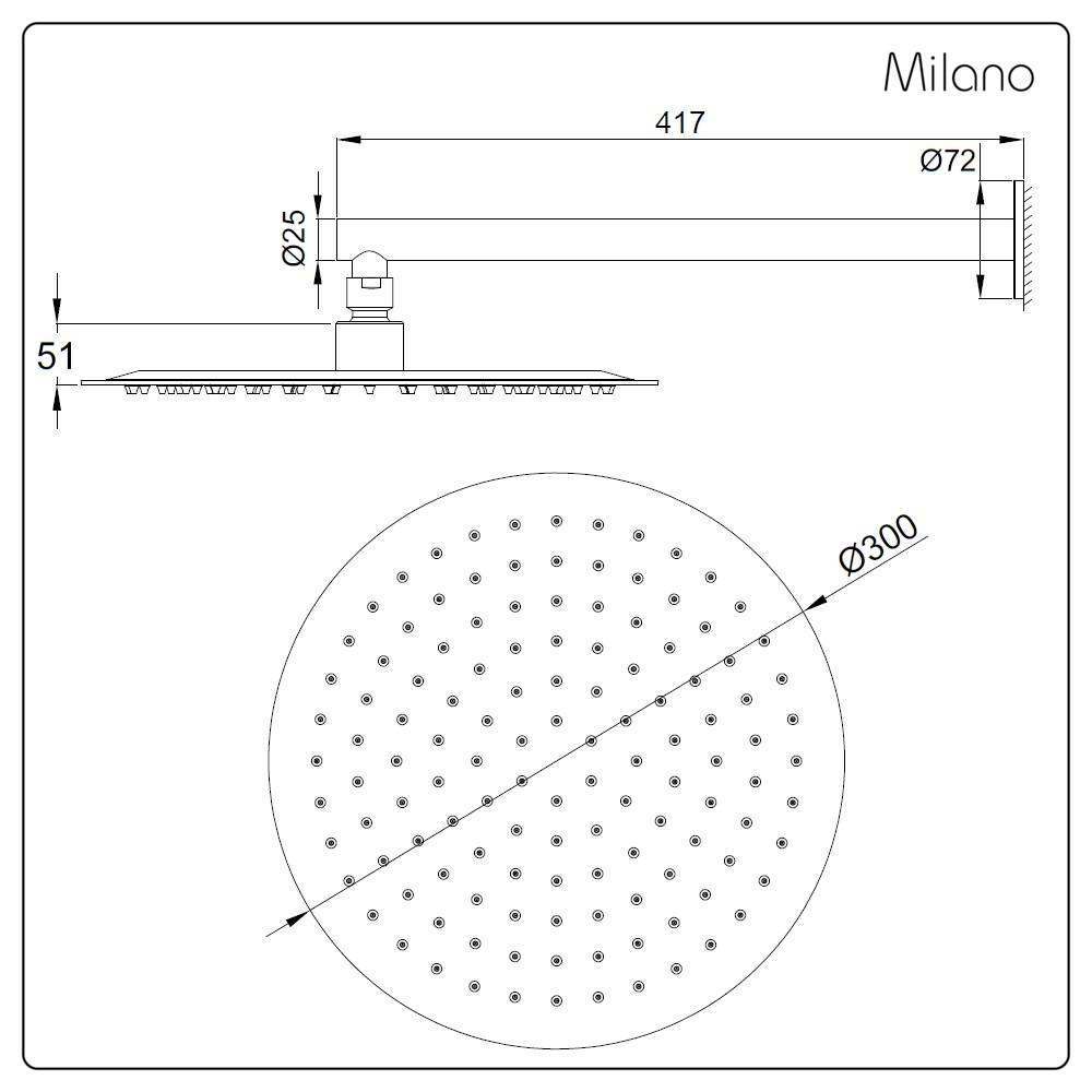 Elevate your modern bathroom with the sleek and stylish Milano Otto 300mm round shower head, complete with wall-mounted arm.