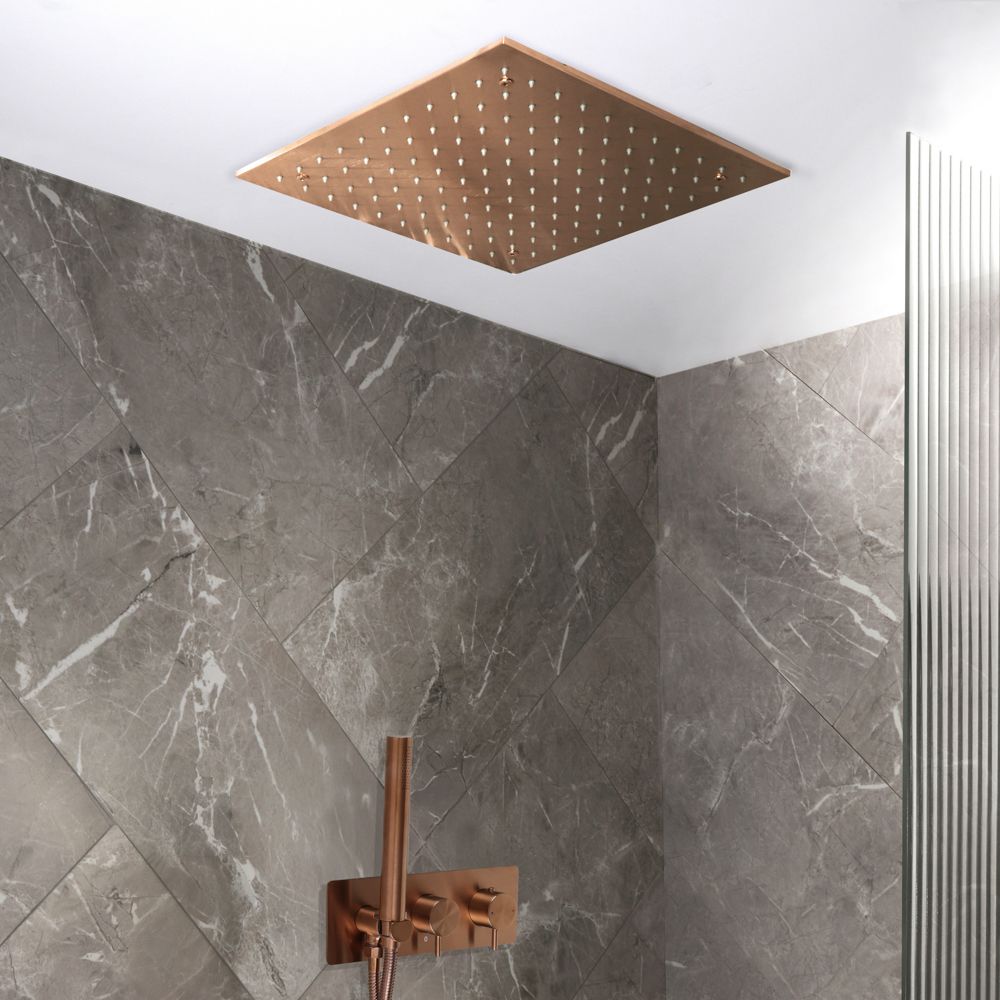 Shower in style with the Milano Otto thermostatic shower system, complete with shower diverter valve, ceiling shower head and hand shower.